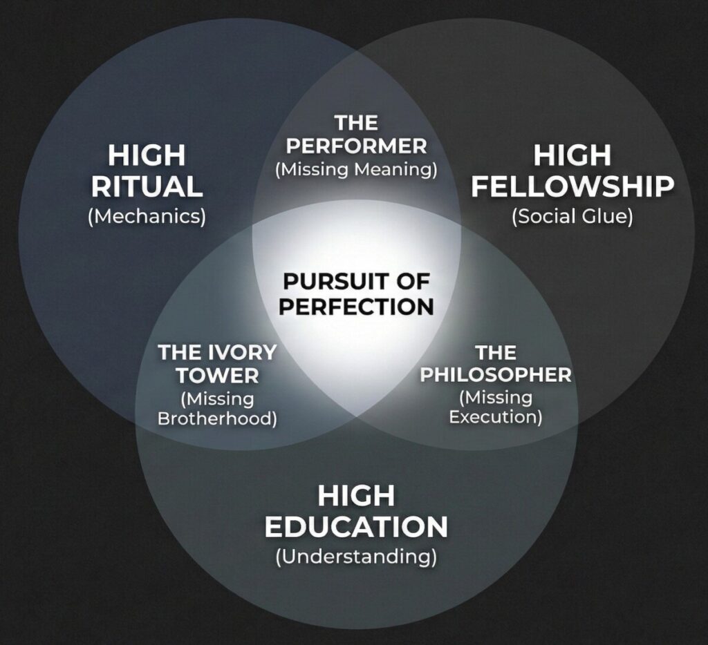 • A Lodge heavy in ritual and fellowship but light in education may feel active — yet shallow. Degrees are performed, meals are shared, but questions go unanswered. Men promised Light receive only memorization and camaraderie.